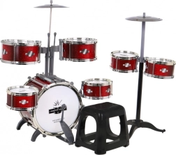 | Veliki dvodijelni set bubnjeva je glazbena igračka namijenjena djeci od pet godina. Set se sastoji od 6 bubnjeva, 2 činela, 2 palice i udobnog stolca. Sviranje bubnjeva uči dijete fokusiranju i koncentraciji. Uklanja stres, poboljšava raspoloženje te vježba koordinaciju ruku i nogu. | |||