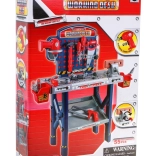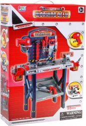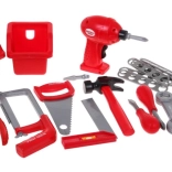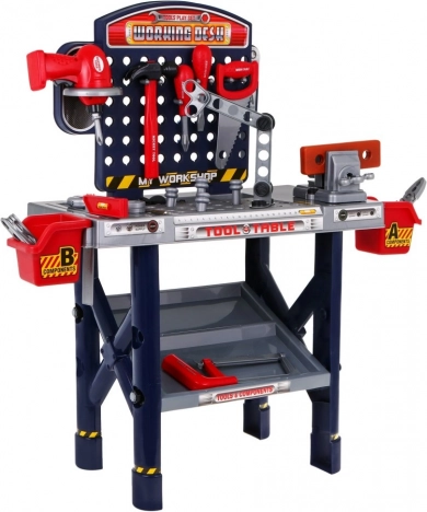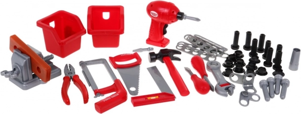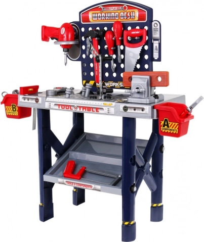 | - radionica, - stega, - odvijač, - čekić, - pila, - pila za metal, - kutnik, - kliješta, - 2 x odvijač, - ključ, - izmjenjivi nastavak za odvijanje, - 4 x tipl, - 8 x vijak, - 11 x matica, - drveni element za zavrtanje, - 8 x pravokutni komad za zavrtanje, - 2 x kutija za alat. | |