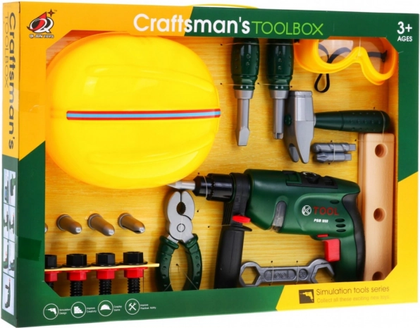 Set malog graditelja za djecu 3+ Električni odvijač + kaciga i naočale + alat