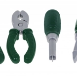 - kaciga, - baterijska bušilica/odvijač, - naočale, - 2 odvijača, - čekić, - izmjenjivi bitovi (za bušilicu i odvijač), - ključ, - kliješta, - 4 tiple, - 4 vijka, - 4 kapice, - 2 odvijačka bita. | Dimenzije |