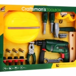 | Set za male majstore s bušilicom, naočalama, kacigom i alatom prikladan je za djecu od 3 godine naviše. Igračka pozitivno utječe na razvoj logičkog razmišljanja, potiče kreativnost i podržava koordinaciju oko-ruka. Odvijač se napaja baterijama 2 x AA 1,5 V - nisu uključene u pakiranje. | Sadržaj seta |