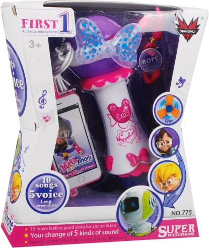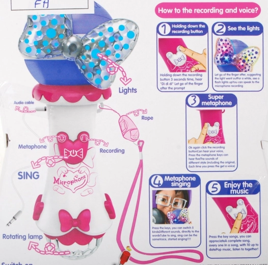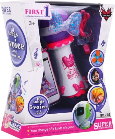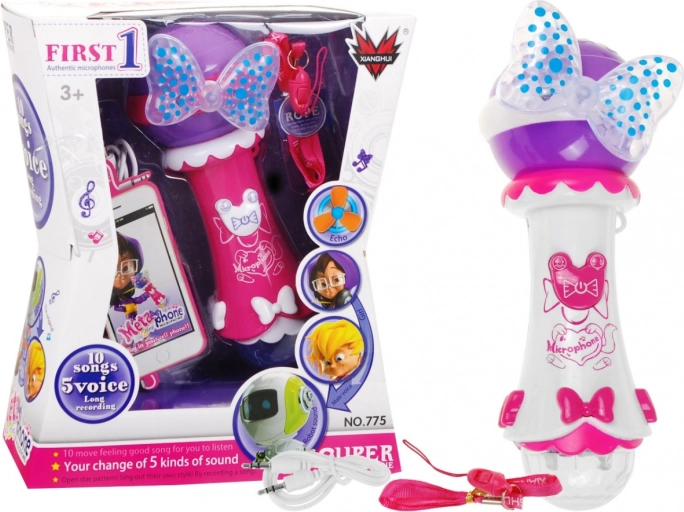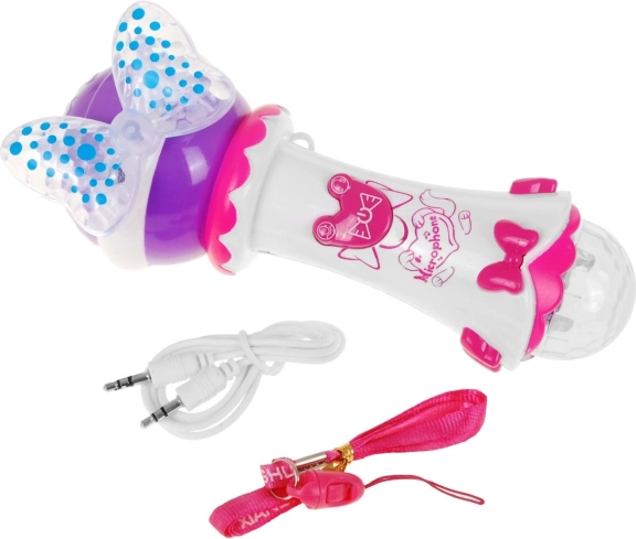 Ovaj dječji mikrofon uljepšat će svaki nastup. Ima veliki zvučnik za jasan zvuk, dvije izrazite LED diode (mašna i velika kugla) koje emitiraju šarene svjetlosne efekte te 10 ugrađenih melodija za trenutnu zabavu. Zahvaljujući funkciji snimanja i reprodukcije djeca mogu sačuvati svoje glazbene trenutke.
