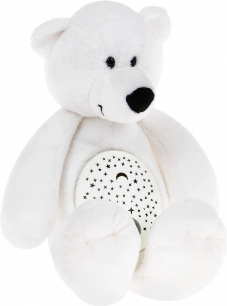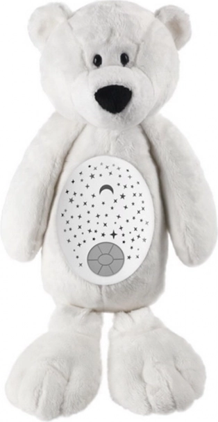 Ovaj interaktivni medvjedić stvara umirujuću atmosferu za lakše uspavljivanje. Projektor u trbuščiću projicira na strop i zidove nježno zvjezdano nebo u bojama crvena, plava, zelena i ljubičasta koje dijete vizualno privlače i istodobno umiruju. Mekani, na dodir ugodan pliš siguran je za dojenčad i poziva na maženje.