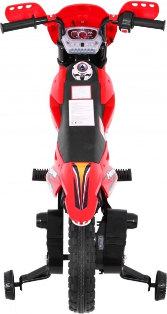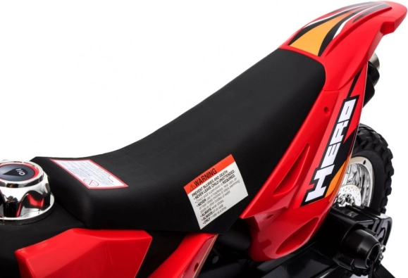Stilski dječji kros motocikl na akumulator u živopisnoj crvenoj boji pruža malim vozačima sigurnu zabavu kod kuće i na otvorenom. Opremljen je 6V motorom RS-390, gumiranim gaznim slojem guma za bolju trakciju, prednjim LED svjetlom i stabilizacijskim kotačićima za sigurnost pri prvim vožnjama. Intuitivna kontrola gasa u ručki i audiopanel sa zvukovima i melodijama osiguravaju realističan doživljaj.