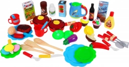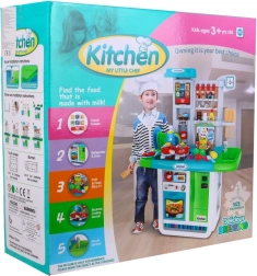 Dio seta su stalak za tanjure, ugrađena daska za rezanje, sat, bočne police i mnogo kuhinjskog pribora, namirnica i posuđa. Kuhinjica se lako sklapa, ima CE certifikat i idealan je poklon.