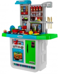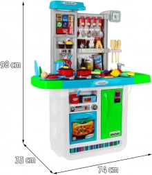 Ova prostrana dječja kuhinjica u živim bojama nudi realistične dodatke i funkcije zahvaljujući kojima će djeca uživati u oponašanju kuhanja kao u pravoj kuhinji. Dva plamenika sa svjetlima i zvukovima prženja i kuhanja, sudoper sa slavinom s pravom vodom te dodirna ploča s melodijama i zvukovima jamče uranjajuću igru.