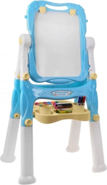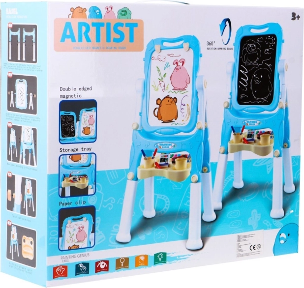 Obostrana ploča za crtanje osmišljena je kako bi poticala djetinjstvo puno kreativnosti. Na bijeloj strani djeca mogu pisati priloženim flomasterima i nakon uporabe sve lako obrisati spužvicom. Magnetska funkcija omogućuje pričvršćivanje šarenih magneta, a držači omogućuju učvršćivanje papira za daljnje slikanje.