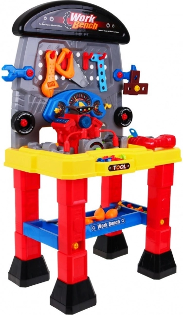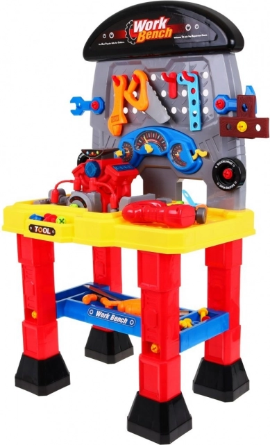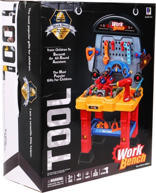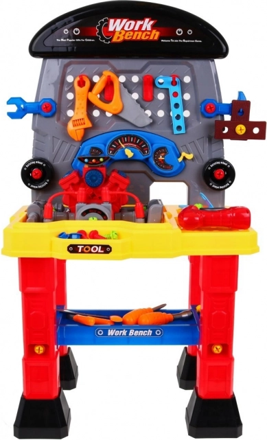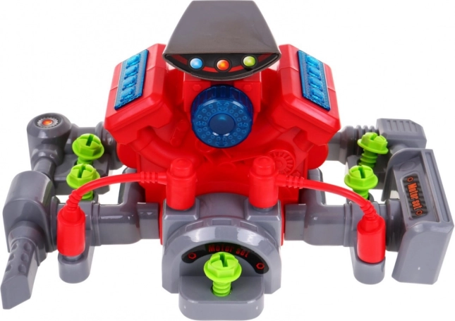 Dječja radionica s motorom nudi bogat asortiman alata, koji savršeno razvijaju manualnu vještinu, maštu i kreativnost vaše djece. Dio seta je motor na baterije s realistično zvučnim i svjetlosnim efektima, koji će oduševiti svakog malog entuzijasta.