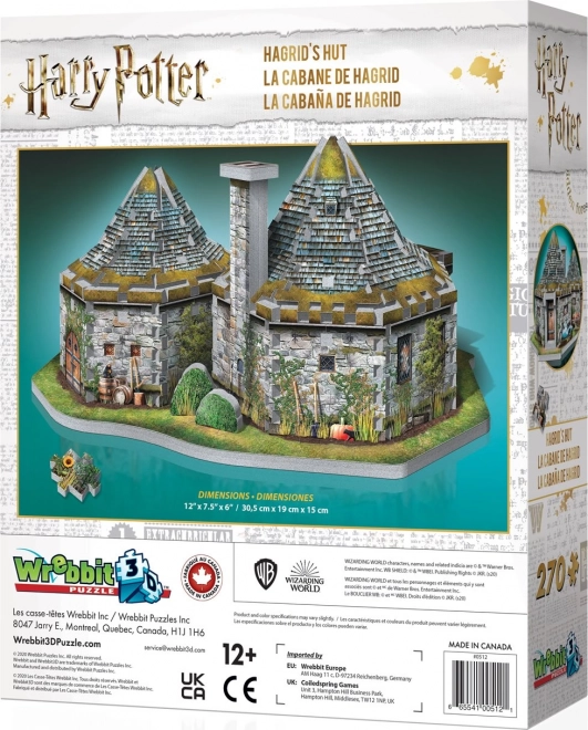 Otkrijte jedinstveno iskustvo slaganja s 3D puzzle Wrebbit: Hagridova koliba. Ovaj detaljni model iz filmske serije Harry Potter vjerno prikazuje kamenu kolibu s dva stožasta krova, drvenim vratima i okolnim zelenilom. Zahvaljujući promišljeno dizajniranim, debljim dijelovima od pjene i papira, konstrukcija čvrsto stoji bez potrebe za ljepilom.