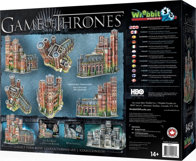 Uđite u svijet Igre prijestolja i sastavite legendarnu Crvenu utvrdu točno onako kako je poznajete s ekrana. 3D puzzle Wrebbit nude pametne zasune dijelova, stabilnu konstrukciju i realistične teksture, zahvaljujući kojima će se istaknuti na polici ili u vitrini. Sastavljen model ima dimenzije cca 42 × 33 × 39 cm i postat će upečatljiva dekoracija te izvrstan poklon za fanove epske sage i ljubitelje arhitekture.