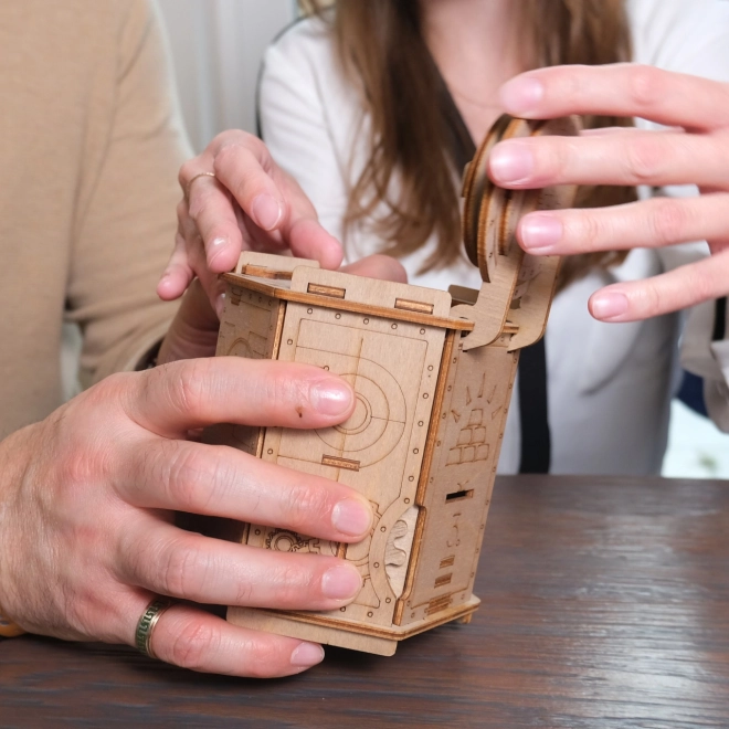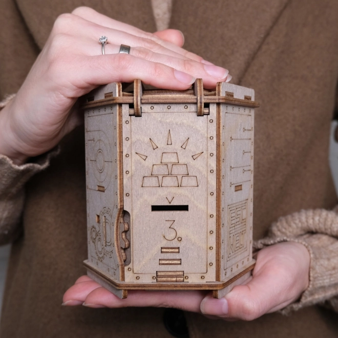 Drveni zagonetka Fort Knox nije samo obična igračka, već intelektualni izazov temeljen na osnovama escape room igara. Zagonetka je izrađena od prirodnog brezinog drveta i nudi unutarnji pretinac, koji se može koristiti za kreativno skrivanje blaga u vlastitoj avanturističkoj igri ili kao jedinstveni dodatak poklonu. Zbog kvalitetne izrade, zagonetka je spremna za ponovljeno igranje, što je čini idealnim izborom za više igrača.
