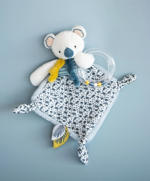 Plišani set Koala Yoca savršen je poklon za novorođenče, pruža mekoću i udobnost uz dodatnu zabavu zahvaljujući zvečki.