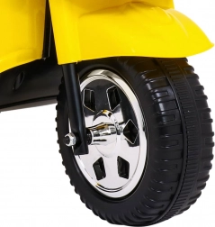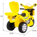 Pogon osigurava motor od 18 W napajan iz akumulatora 6 V / 4,5 Ah. Tri stabilna kotača s gumenim gaznim slojem (19 × 8 cm) pružaju dobar grip i ugodnu vožnju po glatkoj podlozi. Nosivost do 25 kg i prolaznost od 7 cm čine motocikl praktičnim suputnikom i za dvorište i za dnevni boravak.