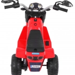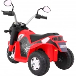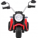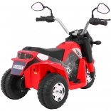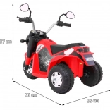 Snažan motor 6 V s tipkalnim startom i efektom zvuka motora, prednje LED svjetlo i crno sjedište od eko kože čine ovu mašinu atraktivnim i sigurnim prijevoznim sredstvom za djecu. Upravljanje je intuitivno – vožnja naprijed/nazad, široki kotači i prolaznost i po manje ravnim površinama.