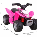 Stilski dječji četverocikl HONDA 250X TRX na akumulator u ružičastoj boji donosi sjajnu zabavu za najmlađe vozače. Nudi tih električni motor 1×30 W, prednja LED svjetla za bolju vidljivost i udobno sjedalo od eko kože. Zahvaljujući stabilnoj konstrukciji, širokim kotačima i jednostavnom upravljanju idealan je za prve vozačke doživljaje u vrtu i kod kuće.