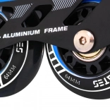 Sigurno pričvršćivanje osigurava trostruko zatvaranje: vezice, čičak traka i kopča sa sigurnosnim zaključavanjem protiv neželjenog otvaranja. Aluminijski okvir kod inline/rolskih klizaljki povećava krutost i trajnost, PU kotači 64×24 mm tvrdoće 85A u spoju s ležajevima ABEC‑7 brinu o glatkoj vožnji. Tijekom zimskih radosti cijenit ćete nehrđajuće noževe ledenih klizaljki i praktične zaštite noževa.