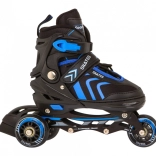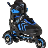 Univerzalni set za male klizače kombinira 4u1: inline klizaljke, rolske i klizaljke za led s mogućnošću brze zamjene nastavaka. Zahvaljujući petstupanjskoj regulaciji veličine 29–33, udobnoj EVA pjeni s Velvet materijalom i čvrstoj polutvrdoj konstrukciji nudi udobnost, stabilnost i sigurnost. Aluminijski okvir, ležajevi ABEC-7 i PU kotači 64 mm 85A osiguravaju glatku i sigurnu vožnju, a za kočenje se brine kočnica na desnoj klizaljci.