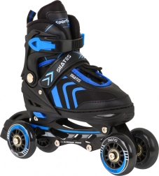 Univerzalan dječji set 4u1 za cjelogodišnju zabavu: inline klizaljke, ledene klizaljke i podesiva konfiguracija u jednom. Zahvaljujući 5‑stupanjskom podešavanju (34–38), aluminijskom okviru, PU kotačićima 70×24 mm s tvrdoćom 85A i ležajevima ABEC-7 pruža glatku vožnju i stabilnost. Udobnost osiguravaju polutvrda konstrukcija, ventilacija i mekani uložak od EVA pjene s materijalom Velvet.