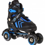 Set 4u1 raste zajedno s djetetom i omogućuje jednostavnu zamjenu između inline i ledene varijante. Sigurno trotočkasto zatvaranje (vezice, čičak traka, kopča s osiguranjem) drži nogu stabilno, dok polutvrda školjka štiti gležanj. Desna klizaljka opremljena je kočnicom za sigurnije zaustavljanje.