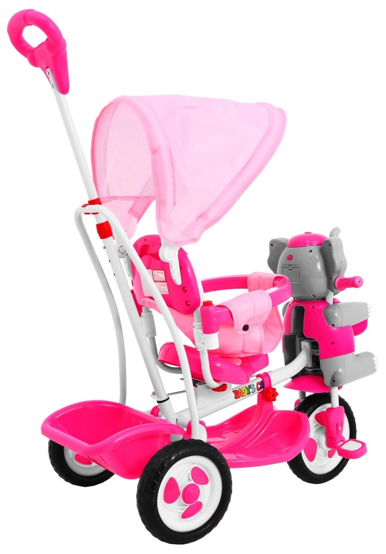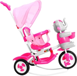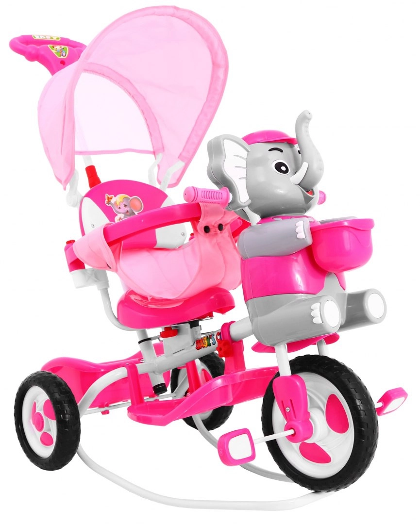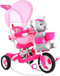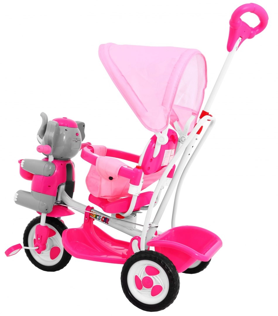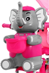 Preslatka dječja tricikla s motivom slonića i bogatom opremom za sigurnu i udobnu vožnju od 1 do 5,5 godina. Nudi roditeljsko upravljanje povezano s upravljačem, podesivi krović protiv sunca, sigurnosnu prečku i široke pjenaste kotače za glatku vožnju. Djecu će razveseliti zvučni efekti na glavi slonića te praktične košarice i pretinci za sitnice.