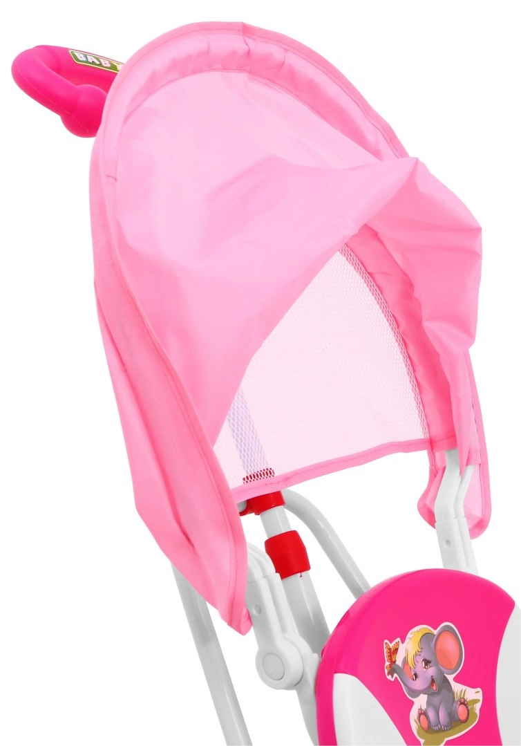 Široki kotači od mekane pjene tiho i udobno upijaju neravnine, prednji kotač sa spojkom olakšava upravljanje, a uklonjiva podloga za noge podupire djecu koja još ne pedaliraju. Slonić na prednjem dijelu skriva pretinac za sitnice, a na upravljaču su zabavni zvučni efekti. Tu su i stražnja košarica, navlaka sjedala i veliki sunčani krović za vožnju u svakom vremenu.