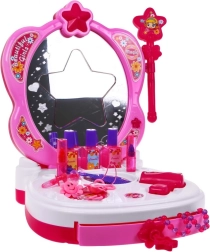Ovaj interaktivni ružičasti toaletni stolić sa zvjezdanim ogledalom osvijetlit će dječju sobu. Ogledalo svijetli u tri boje (plava, crvena, ružičasta), a čarobnu atmosferu upotpunjuje četiri melodije. Zahvaljujući bogatoj opremi djeca lako oponašaju omiljene beauty rituale i uranjaju u svijet maštovitog šminkanja i frizura.