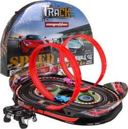 Uživajte u napetim utrkama s kompletom Speed Track s dvjema petljama, dvama autićima i ručnim upravljanjem. Staza nudi svjetlosne efekte (prednja svjetla auta i osvijetljeni “tahometri”), zvuk vožnje trkaćeg automobila, brojač krugova i jednostavno sastavljanje. Bez baterija – dovoljno je okretati ručicu na upravljaču i krenuti!