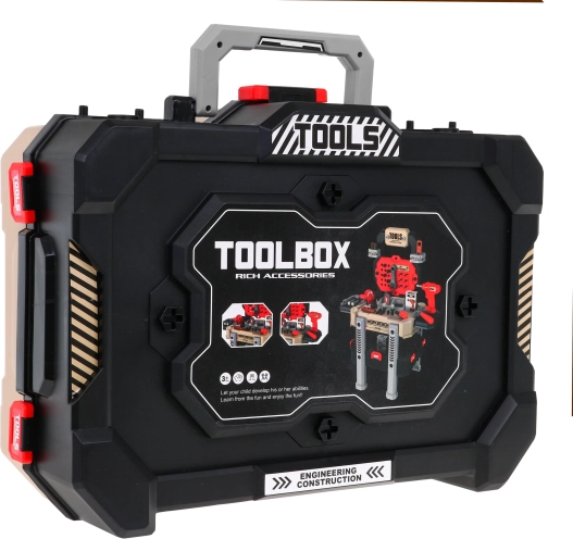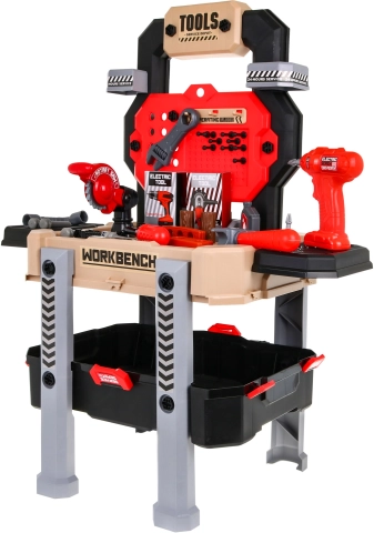 Ova realistična radna klupa za djecu spaja pregledni stalak s prostranim koferom, kako bi alat uvijek bio pri ruci i lako pospremljen. Zahvaljujući 78 elemenata i funkcionalnoj bušilici/odvijaču, djeca će isprobati zavijanje, rezanje i montažu te naučiti osnovne principe radioničkog rada.