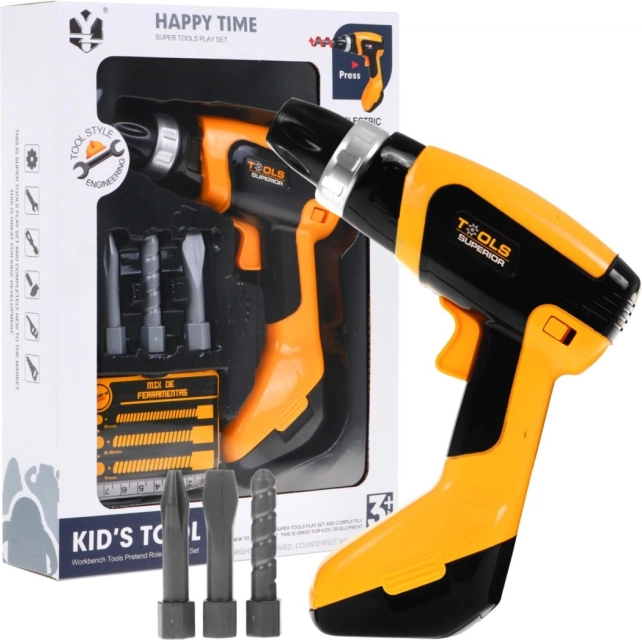 Ova električna bušilica za djecu izgleda i radi kao prava. Djeca mogu koristiti bušilicu za zatezanje i otpuštanje vijaka ili za bušenje. Zamjenjivi nastavci čine igru zabavnijom.