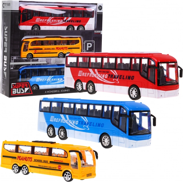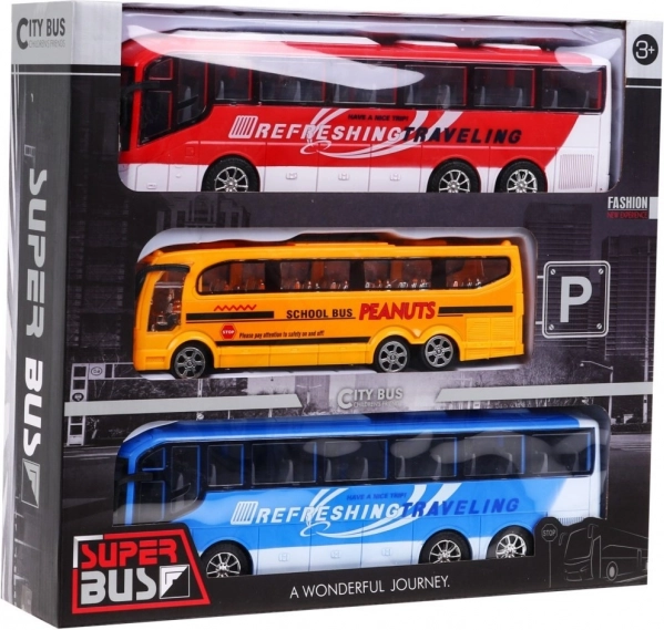 Set od tri autobusa, koji će oduševiti svakog malog ljubitelja motornih vozila, sadrži: