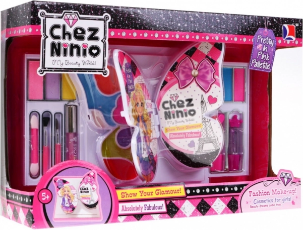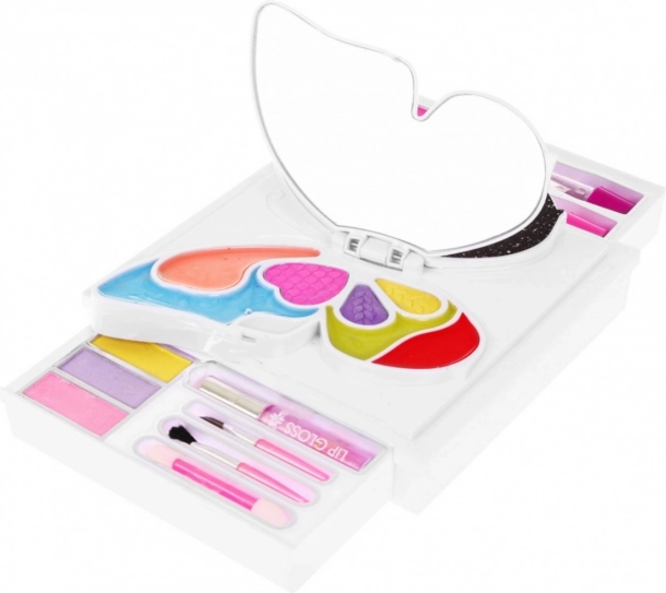 Sklopivi make-up set za djecu s motivom leptira nudi šarenu paletu sjenila za oči, sjajila i ruževe, dva ogledala i kistiće. Izrađen je od kvalitetnih, atestiranih materijala, ima CE certifikat i prikladan je od 3 godine – idealan za kreativnu igru i za putovanja.