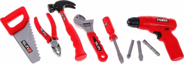Čekić, pila, odvijač, kliješta i francuski ključ – sve od izdržljive plastike za sigurnu i zabavnu igru kod kuće i u dvorištu.