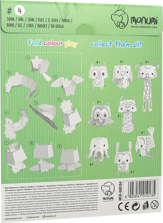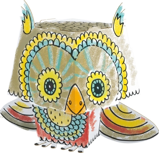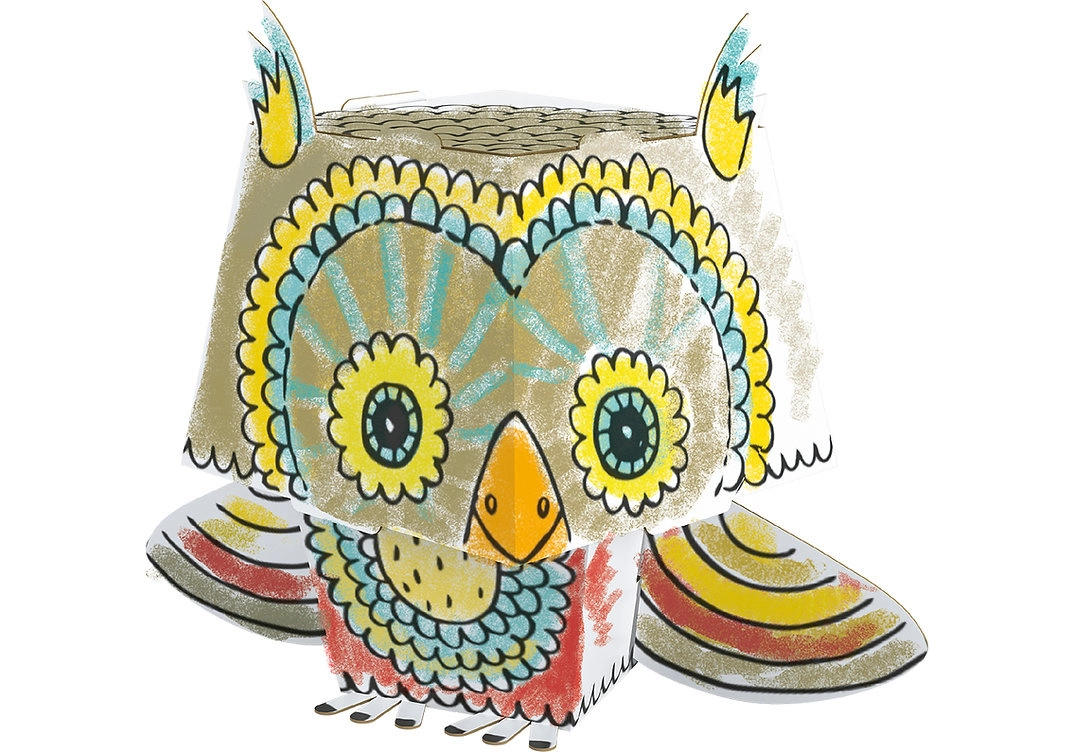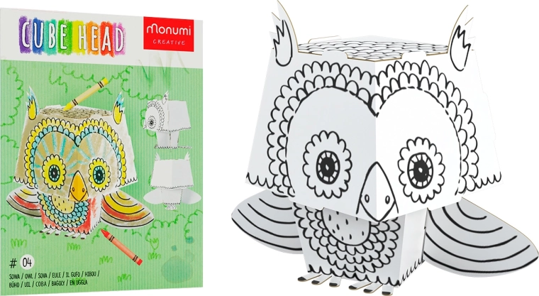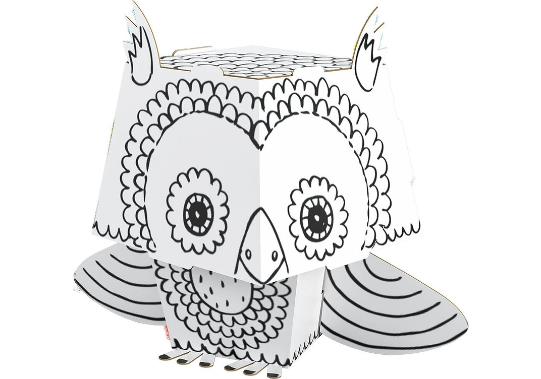 Ovaj prostorni model sove donosi djeci sate kreativne zabave. Profesionalni crni tisak s jasnim obrubima potiče na bojanje te razvija finu motoriku i maštu. Karton dobro upija vlagu, ne gužva se i ne probija, pa je prikladan za razne likovne tehnike.