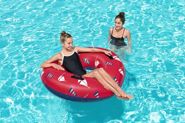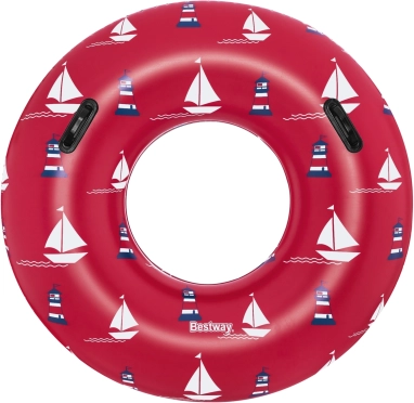 Uživajte u ljetu s prostranim napuhujućim kolutom BESTWAY promjera 119 cm. Izdržljiv vinil, udobne 2 ručke i sigurnosni ventil osiguravaju stabilnost, udobnost i zabavu u vodi. Moderan pomorski dizajn u crvenoj boji pristaje uz bazen i plažu.