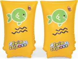 Zahvaljujući upadljivoj žutoj boji i razigranom motivu zelene ribice, rukavice su dobro vidljive i djeca ih rado nose. Praktični ventili olakšavaju brzo napuhavanje i ispuštanje zraka, a kompaktna veličina znači da ih lako možete ponijeti na odmor, na bazen ili na jezero.