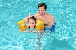 Napuhujuće rukavice Bestway Swim Safe ABC izvrstan su pomoćnik za djecu koja počinju s plivanjem. Dvokomorna izvedba od izdržljivog PVC-a osigurava stabilnost na vodi i veću sigurnost, dok lagana konstrukcija ne ograničava prirodno kretanje ruku.