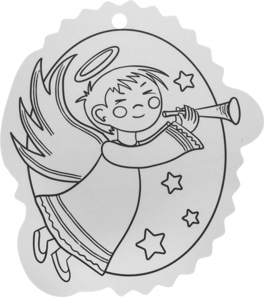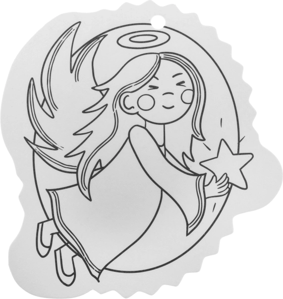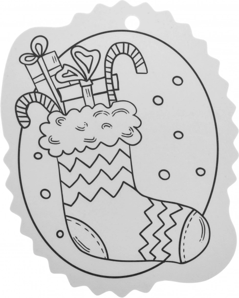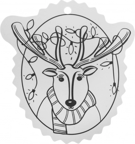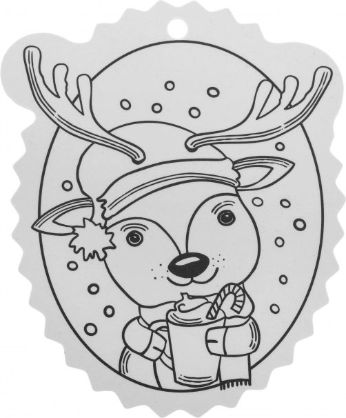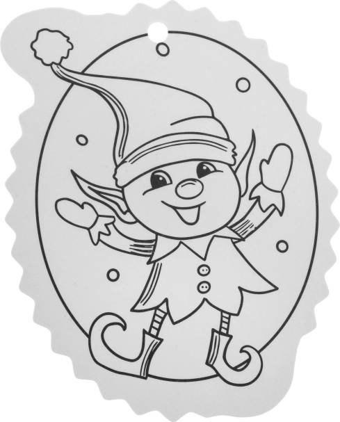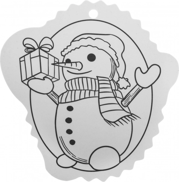 Crno-bijeli obrisi olakšavaju bojanje, a otvor na gornjem dijelu omogućuje brzo vješanje na bor ili poklon.