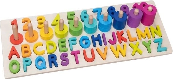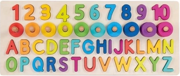 Naša slagalica sadrži 91 različit element, uključujući drvenu bazu, slova (26 kom) i brojeve od 1 do 10 te 55 šarenih kolutića. Djeca tako mogu lako vježbati prepoznavanje i zbrajanje brojeva te stvaranje jednostavnih riječi.