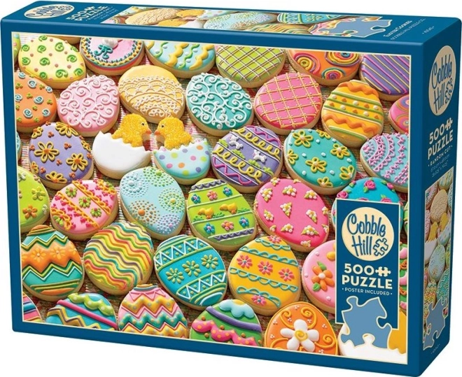 COBBLE HILL puzzle s motivom veselih uskrsnih keksića razveselit će sve ljubitelje izazova. Posebna nekonvencionalna matrica ne slijedi uobičajenu mrežu, pa kutovi i rubovi nisu uvijek u istoj osi, a dijelovi imaju netradicionalne oblike. Zahvaljujući tome slaganje je zabavnije i zahtjevnije nego kod klasičnih puzzli.