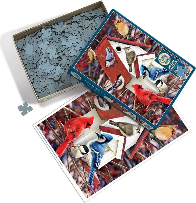 Uživajte u opuštanju uz slaganje puzzli COBBLE HILL Zimska kućica od 500 dijelova. Jedinstvena matrica s nepravilnim oblicima povećava zabavu i izazov, a pakiranje dodatno sadrži predložak 30,5 × 22,9 cm, dok gotova slika ima dimenzije otprilike 48,9 × 67,6 cm.