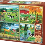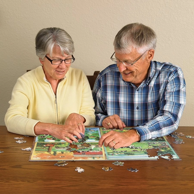 Puzzle COBBLE HILL „Prijatelji sa sela“ nude šarenu i mirnu seosku scenu sa životinjama i crvenim štagljevima, što će oduševiti ljubitelje prirode. Ekstra veliki dijelovi udobno se drže i doprinose vježbanju fine motorike i prostornog opažanja.