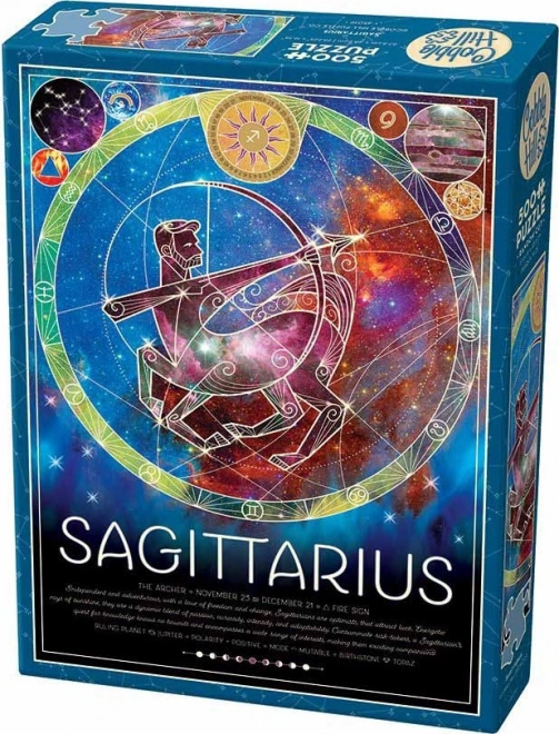 Puzzle COBBLE HILL razlikuju se jedinstvenom proizvodnom matricom: dijelovi nemaju klasičnu mrežu, njihovi kutovi i rubovi nisu u jednoj osi te dolaze u netradicionalnim oblicima. To donosi zabavan izazov svim ljubiteljima slaganja, a prekrasan motivični prikaz Strijelca iz horoskopa pruža dekorativan rezultat nakon sastavljanja.