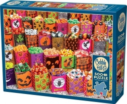 COBBLE HILL slagalica s motivom halloweenskih slatkiša nudi jedinstveno i izazovno iskustvo slaganja. Zahvaljujući nekonvencionalnim oblicima dijelova koji ne slijede tradicionalni rešetkasti uzorak, trebat će vam veća doza strpljenja i umijeća za slaganje.