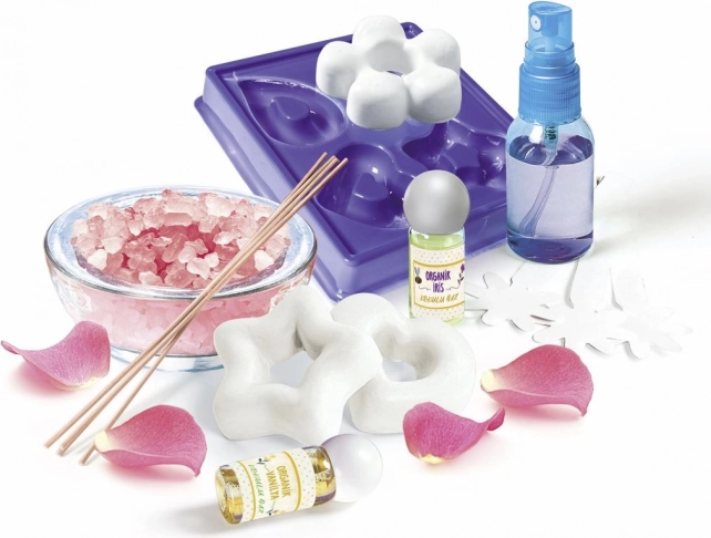 Set sadrži sve što vam je potrebno za eksperimentiranje s kozmetikom te za izradu vlastitih parfema i mirisnih dekoracija.