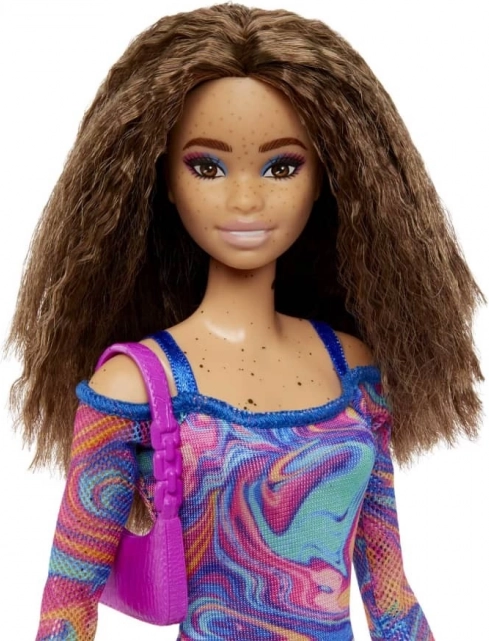 Lutke Barbie Fashionistas donose svjež pogled na modu, stil i osobnost. Ova lutka očarava vrtlogom koraljnih, ružičastih i plavih tonova na haljini s mramornim duginim uzorkom, mrežastim rukavima i trendi dodacima. Idealna za djecu koja vole kombinirati outfite i stvarati vlastite priče.