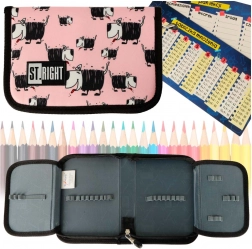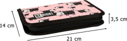 Praktična školska pernica s dvjema preklopima u ružičastom dizajnu s motivom pasa. Nudi preglednu organizaciju školskog pribora, zatvara se patentnim zatvaračem i ima ergonomski privjesak klizača. Unutra se nalaze pregrade i elastični držači za flomastere, olovke i ravnalo, a dio seta su i tablica množenja i raspored sati.