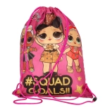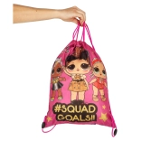 Upadljiv ružičasti dizajn s likovima LOL SURPRISE i natpisom #SQUAD GOALS osigurat će da se djeci vreća ne dosadi.