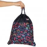 Stilska i praktična vreća za obuću BAMBINO s neonskim tiskom na crnoj podlozi idealna je za školu, tjelesni i slobodno vrijeme. Zahvaljujući dvostrukim bočnim uzicama možete je udobno nositi u ruci, na ramenu ili kao ruksak. Kompaktne dimenzije 34 × 43 cm pružaju dovoljno mjesta za tenisice ili sportsku opremu.