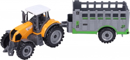 Ovaj traktor s prikolicom i ogradom idealan je za dječju igru koja oživljava farmerske avanture. Odlikuje se čvrstom metalnom konstrukcijom i kotačima slobodnog okretanja, koji omogućuju lako kretanje po raznim površinama. Djeci pruža sjajan doživljaj vožnje te potiče maštu u igri farmera.