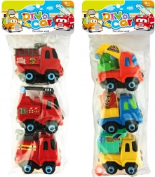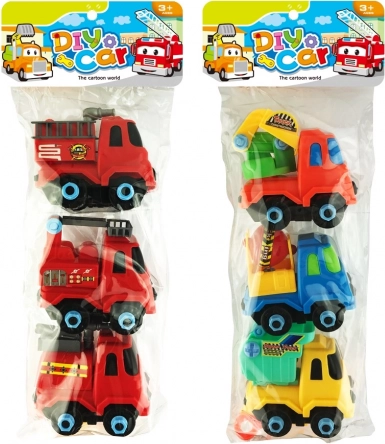 Set vijčanih autića za djecu koji sadrži tri različita modela duljine 10 cm. Idealan za male graditelje i vatrogasce.